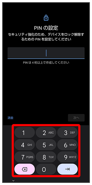 - をタップすると、入力したロックNo.(PIN)を消去できます。