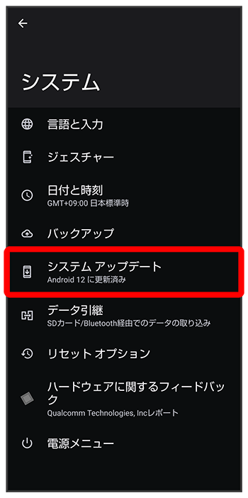 システムアップデートが実行されます。