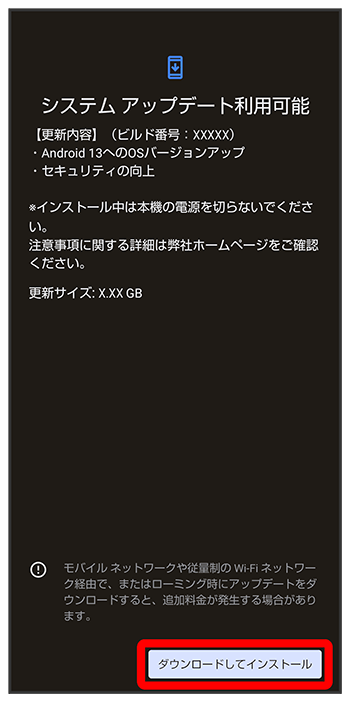 システムアップデート画面が表示されます。