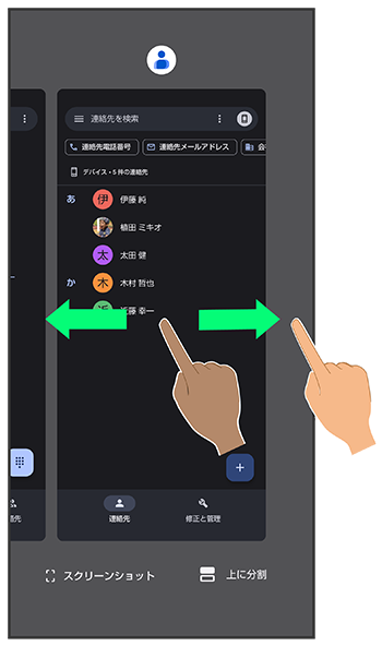 アプリの履歴を左右にドラッグして、次に操作したいアプリの履歴をタップ
