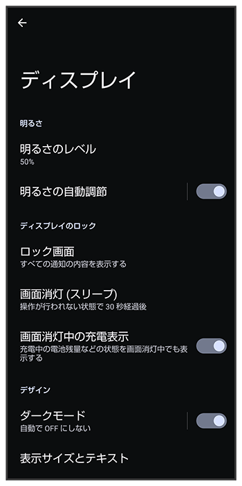 | ロック画面 | が追加され、画面ロックを解除しないで本機に接続したデバイスを操作できるようにするかどうかを設定できます。 が追加され、ロック画面に通知が表示されていないときに大きな時計を表示するかどうかを設定できます。 がに変更されます。 がに変更されます。 そのほかの項目が一部変更されます。 |