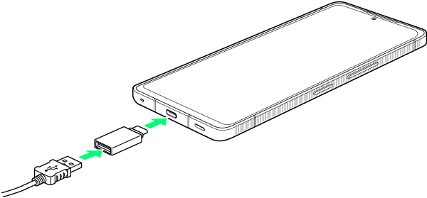 用意したケーブルを、これまでお使いのスマートフォンに接続する