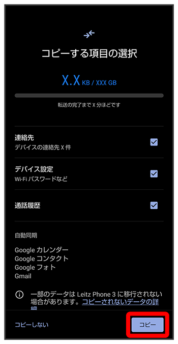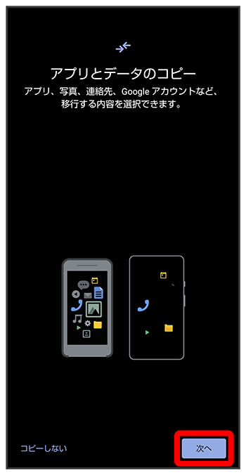 - ほかの端末などからデータをコピーしないときは、をタップします。
