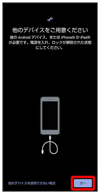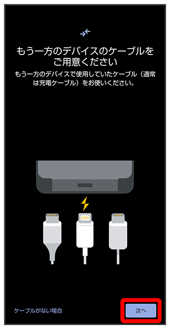 - これまでお使いのスマートフォンのケーブルがない場合は、をタップして、画面に従って操作してください。