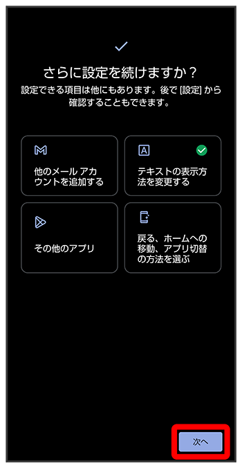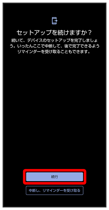 - 初期設定を中断し、あとでリマインダーを受け取るときは、をタップします。