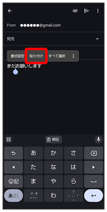 貼り付ける文字をタップしても、貼り付けられます。あらかじめクリップボードを有効にしてください。アプリによっては、利用できないことがあります。