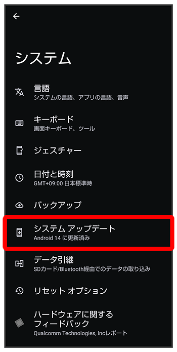 システムアップデートが必要なときは、通知が表示されます。通知をタップし、画面に従って操作してください。通知が表示されない場合などは、次の手順で必要かどうかを確認してアップデートできます。