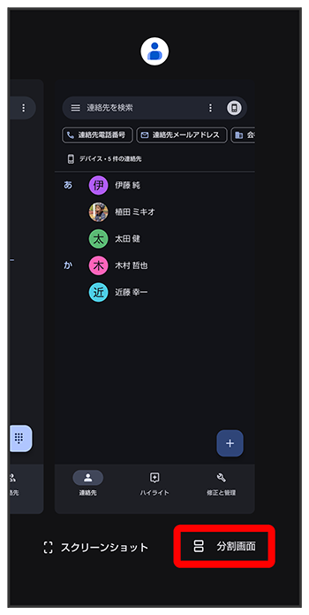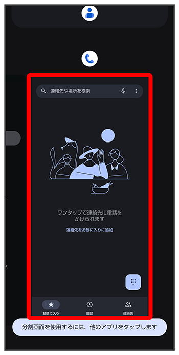 - アプリの使用履歴画面でアプリの履歴のアイコンをタップと操作しても画面を分割できます。