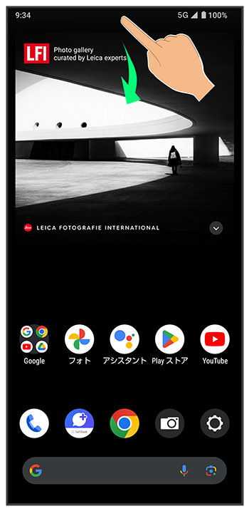 - 通知パネルが開いてない状態で、ステータスバーを2本の指で下にフリックしても、クイック設定パネルが表示されます。