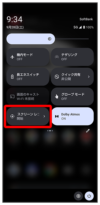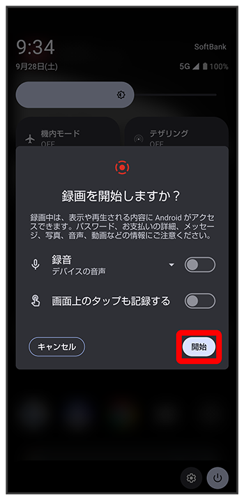スクリーンレコード開始画面で「画面上のタップも記録する」の