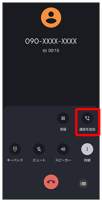- 電話番号発信画面の上部を下にフリック通話を追加する連絡先をタップ通話を追加する電話番号をタップと操作しても、通話を追加できます。