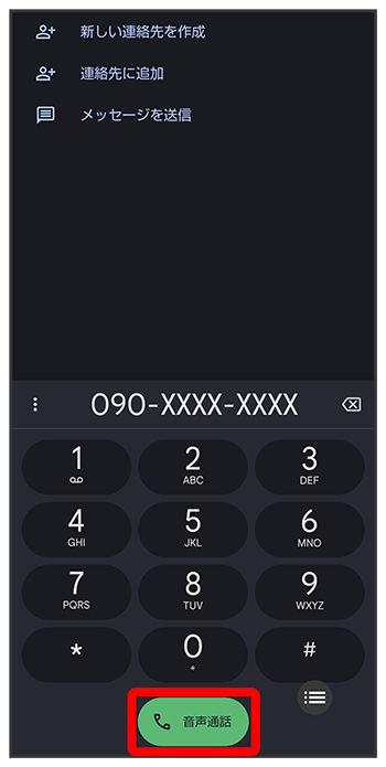 - 電話番号発信画面の上部を下にフリック通話を追加する通話履歴の