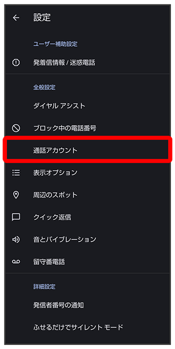 通話サービス設定画面が表示されます。