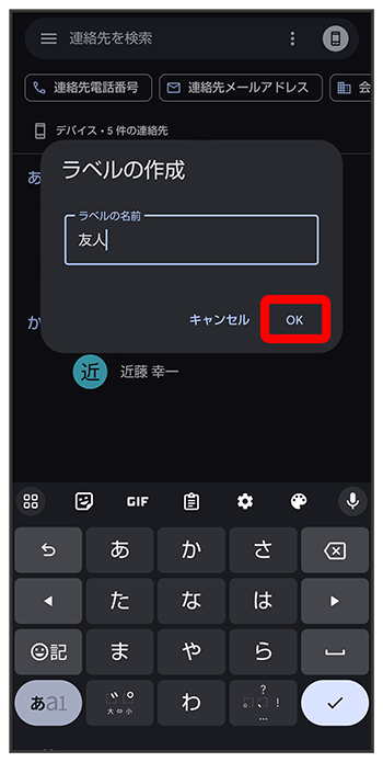 (電話)と操作して表示した連絡先画面では、ラベルの登録はできません。