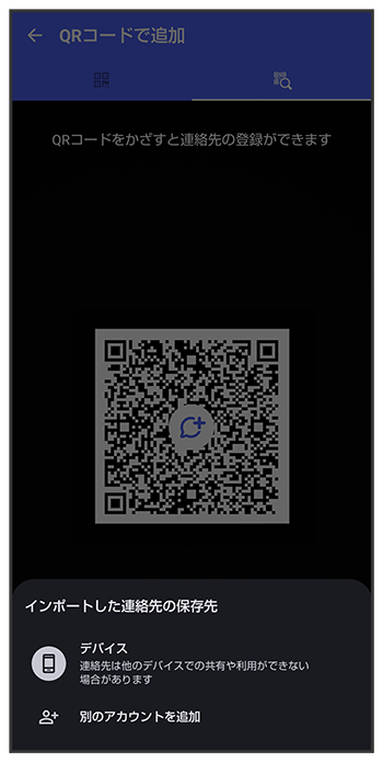 相手機器でQRコードを表示QRコードを画面中央に表示