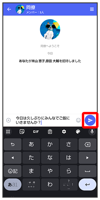 グループメッセージ内で、メンション付きメッセージを送信することができます。