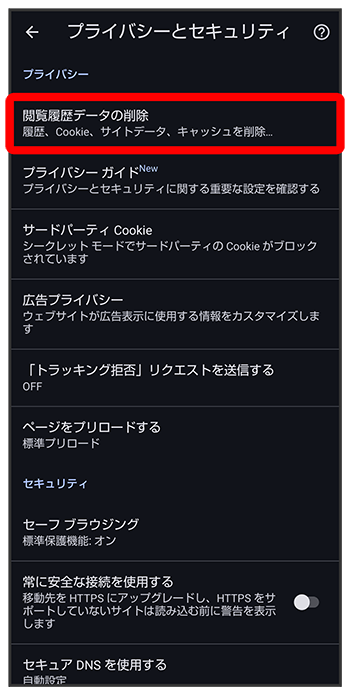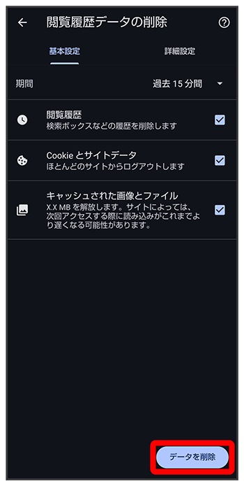 期間を選択削除する情報の種類を設定と操作しても、閲覧履歴データを削除できます。