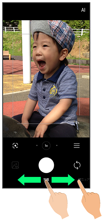- 撮影画面を左右にドラッグしても、撮影モードが切り替わります。
