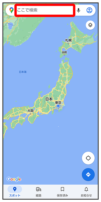検索バーの入力欄をタップ