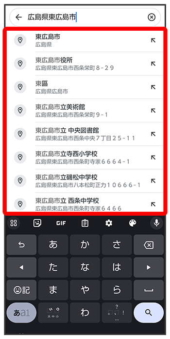 住所や都市、施設名などを入力選択候補から住所や都市、施設名などをタップ