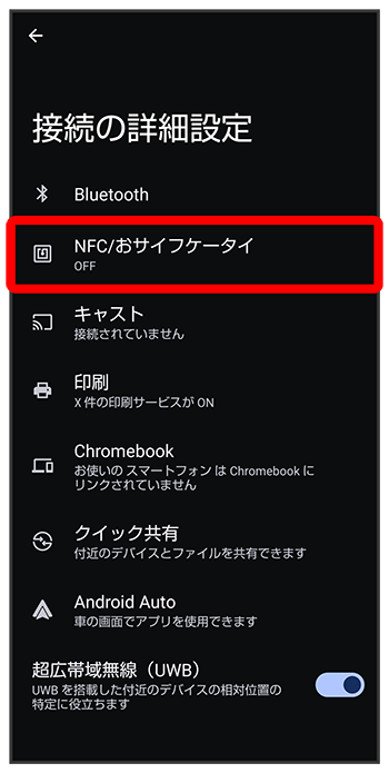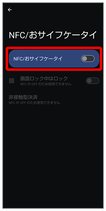 NFC/おサイフケータイ®設定画面が表示されます。