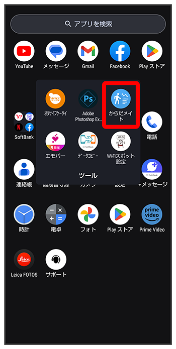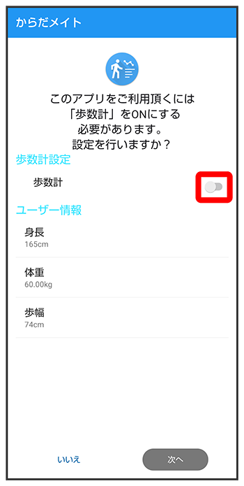 からだメイト画面で- 確認画面が表示されたときは、画面に従って操作してください。