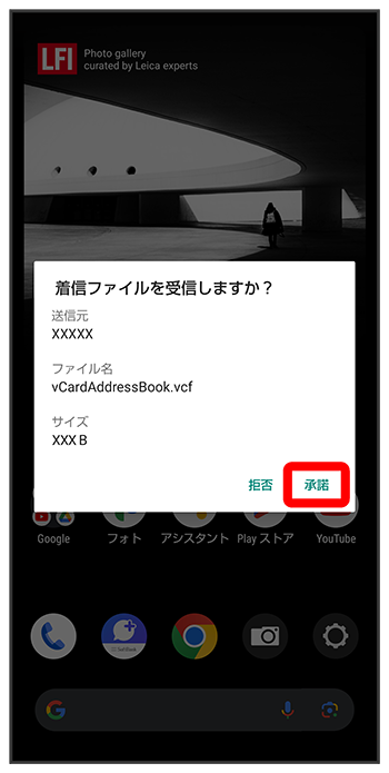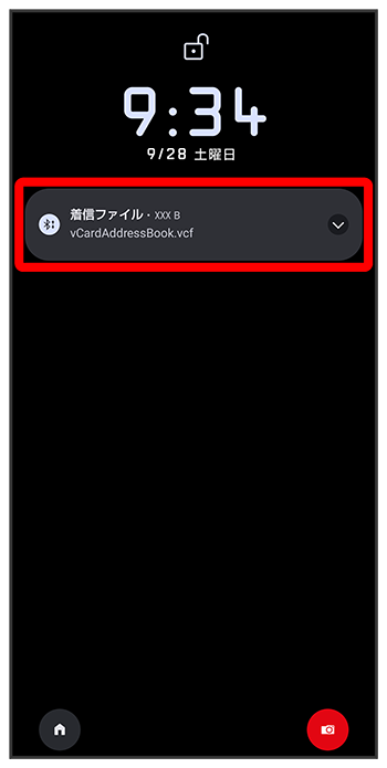 相手からデータの受信要求があると、ロック画面に通知が表示されます。次の操作を行うと、受信することができます。
