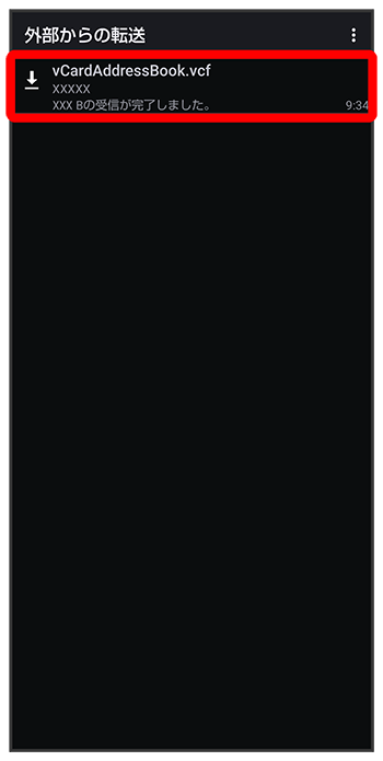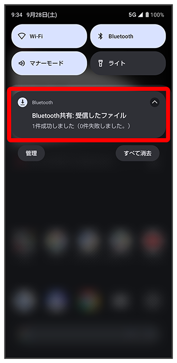 が表示されます。ステータスバーを下にフリックしてBluetooth®共有通知をタップしてください。
