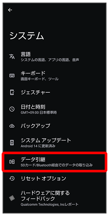 データ引継画面が表示されます。