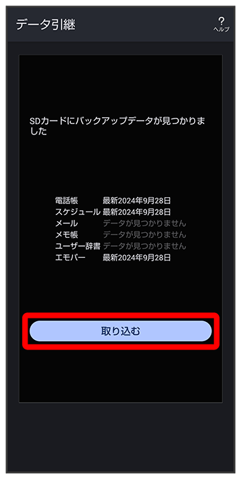 SDカードからデータを取り込む(データ引継)