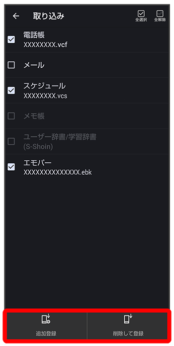 取り込む項目をタップ取り込むファイルをタップ/