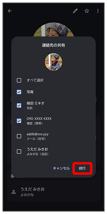 送信する連絡先をタップ