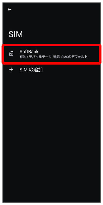 SoftBank画面が表示されます。