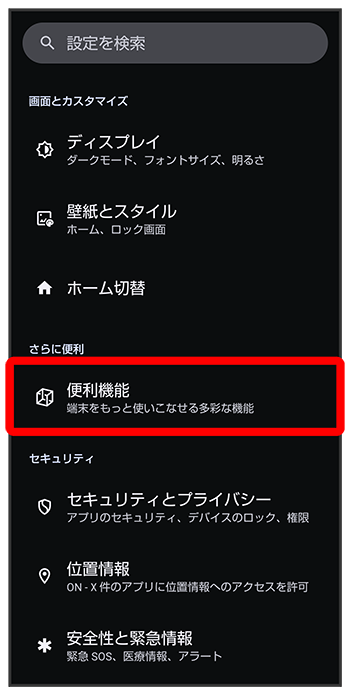 便利機能画面が表示されます。