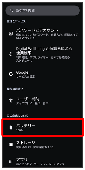 バッテリー画面が表示されます。