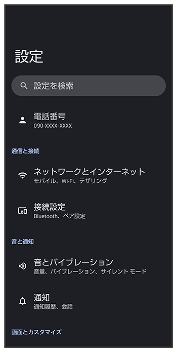 | 壁紙とカスタマイズ | 「壁紙とスタイル」が「壁紙とカスタマイズ」に変更されます。 /タブが削除されます。 が追加され、ロック画面やホーム画面、アイコンなどのデザインを一括で設定できます。 が追加され、アイコンや文字などの色を設定できます。 が追加され、/が移動されます。 がに変更されます。「時計」下部の画面を左右にフリックすると、ロック画面に表示される時計のフォントを変更できます。が削除されます。が追加されます。 がに変更されます。 がに変更されます。 がに変更されます。 そのほかの項目が一部変更されます。 |