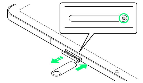 USIM/SDカード取り出しツール(試供品)をUSIM/SDカード用トレイの穴にまっすぐ差し込む