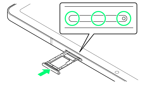- ○部分をしっかりと押し、本体とUSIM/SDカード用トレイにすき間がないことを確認してください。