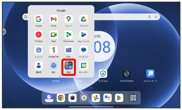 (分割画面)画面右のアプリ一覧からアプリをタップしても、アプリを分割して表示できます。 - アプリをフルスクリーン表示で使用中に、画面下部を上に短くフリックして指を止め、ドラッグしてタスクバー(お気に入りトレイ)をアプリの上に重ねて表示他のアプリのアイコンを画面の左右端にドラッグしても、アプリを分割して表示できます。