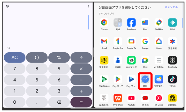 - アプリを分割画面で表示しているときは、アプリ履歴画面にそれらのアプリの組み合わせで表示されます。
