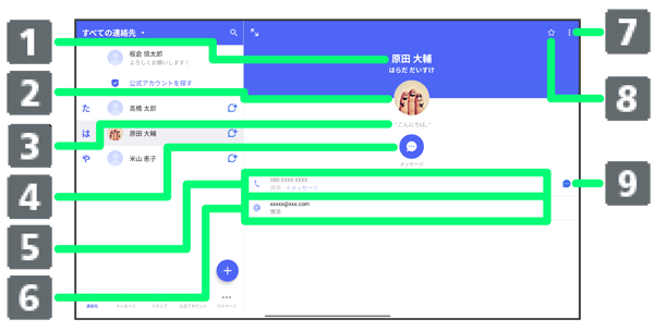 連絡先詳細画面の見かた