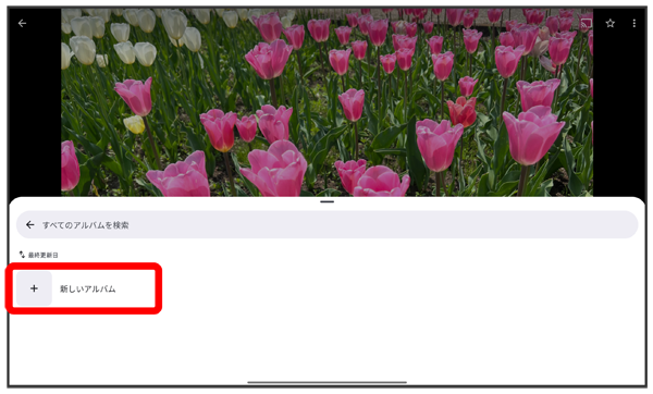 フォト画面で写真/動画を追加したいアルバムをタップこちらで検索できます