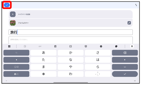 フォト画面で編集したいアルバムをタップアルバムに写真/動画を追加する
