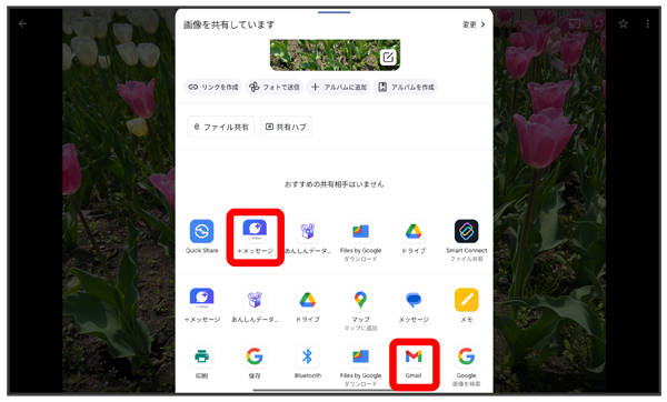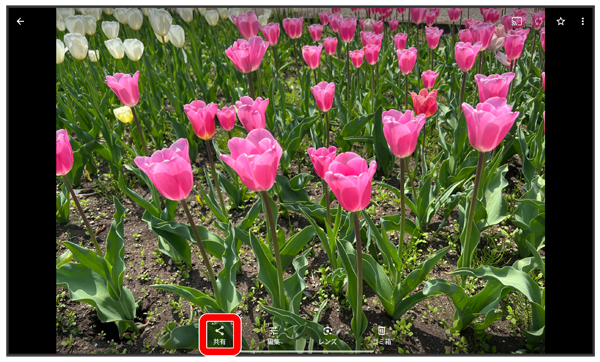 (共有)が表示されていない場合は、画面をタップすると表示されます。- 確認画面が表示されたときは、画面の指示に従って操作してください。