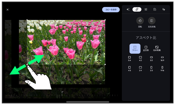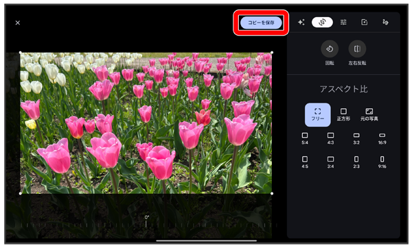 - 「アスペクト比」の各アイコンをタップすると切り出す枠の形状を変更できます。