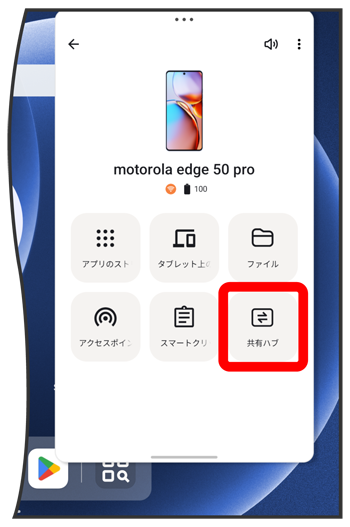 - 共有ハブのサムネイルが閉じている場合は、画面右端の