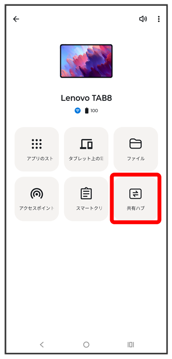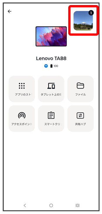 スマートフォンで共有ハブトレイのサムネイルをタップ