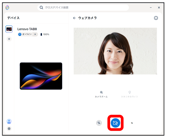 ウェブカメラ画面または本機でカメラのライトを点灯する