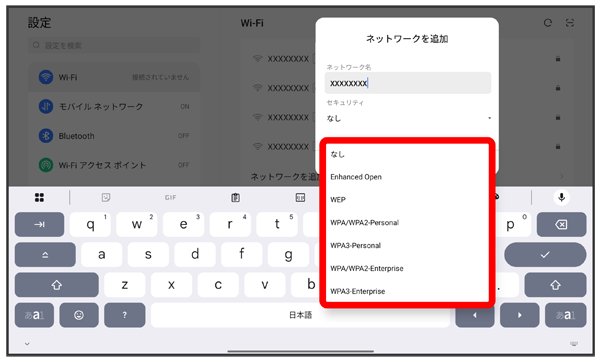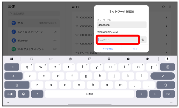 - セキュリティで保護されていないアクセスポイントのときは、パスワードを入力する必要はありません。
