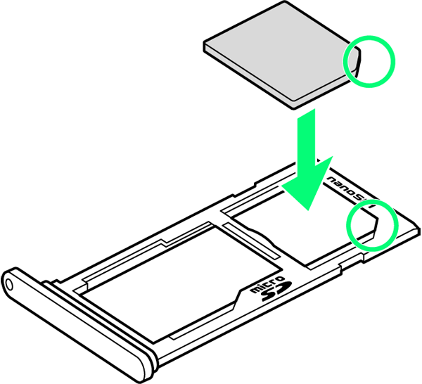 USIMカードのIC(金属)面を下に向けてトレイに取り付ける